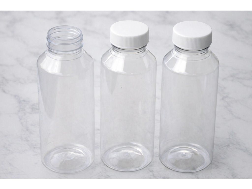 500 ml transparentní doza s mléčně bílým uzávěrem na tekuté i sypké materiály.