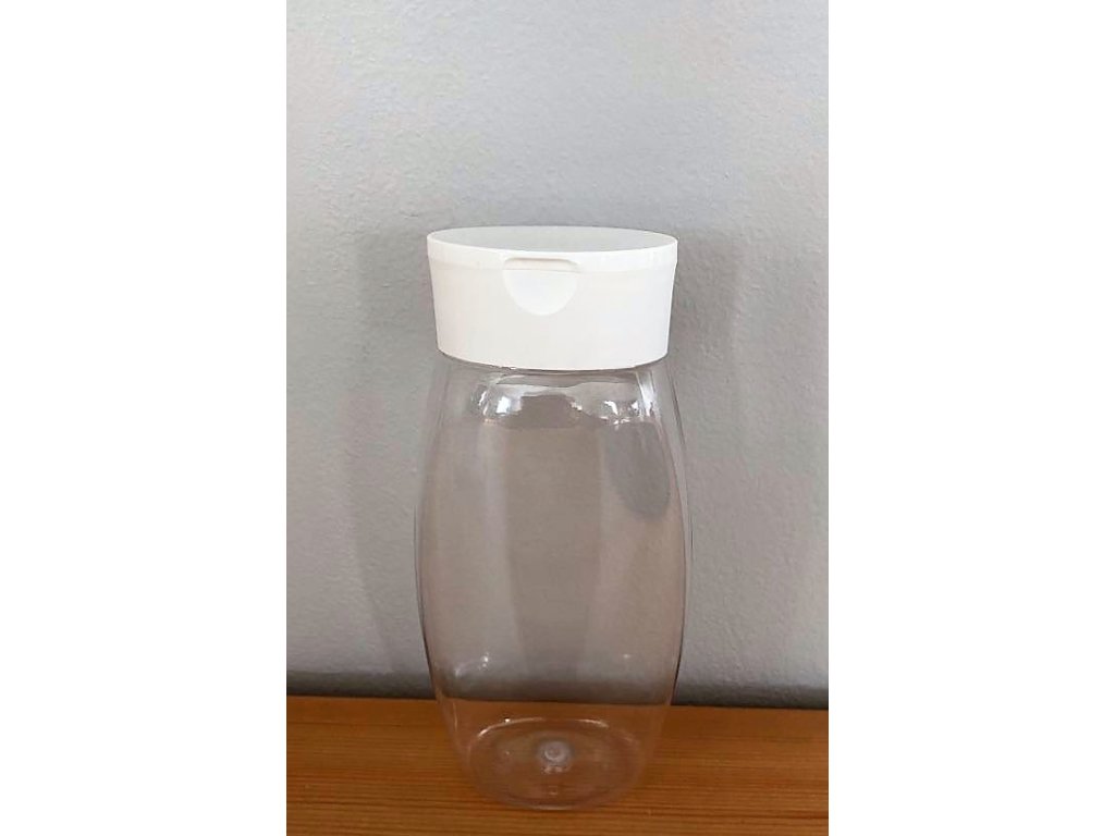 Transparentní kosmetická lahvička s klipovým uzávěrem v hodná pro tekutá mýdla, šampony, kondicionéry.