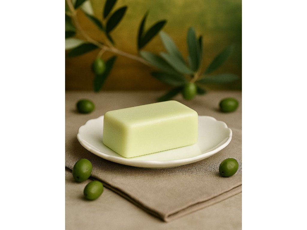 Mýdlová hmota oliva SOAP s přídavkem olivového oleje . Barva lehce olivová, průsvitná.