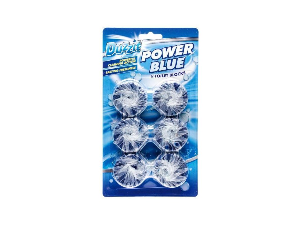 Duzzit Power Blue tablety do WC rezervoárů 6ks jsou praktické modré tablety určené do externích rezervoárů toalety. Přinášejí dlouhodobou svěžest, zbarvení vody a extra funkci proti zápachu a vodnímu kameni, což usnadní udržení příjemného prostředí v koupelně.